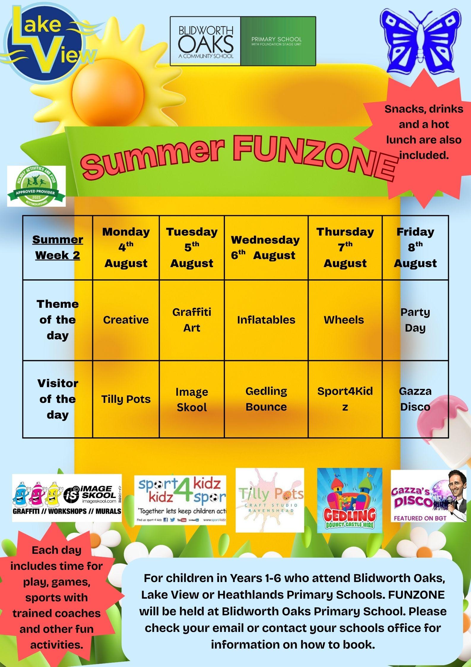 Our new holiday provision - The Holiday FUNZONE! - is for children in Years 1-6 at Blidworth Oaks, Lake View or Heathlands Primary Schools.